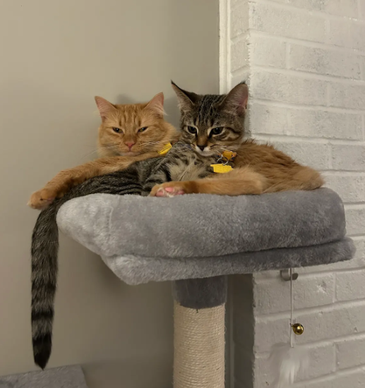 Hattie and Murphy are non-biological siblings who adore each other very much. They share a combined 3 brain cells that they put to good use searching for snacks, water to swim in, and premier napping spots. They are self-described peanut butter aficionados.