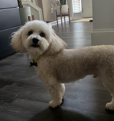 Easton is a poodle-bichon mix who is the boss of the house. He enjoys running around outside, cuddling and eating anything in sight. Him and Deuce often argue over toys, as Easton loves to hoard toys in his bed, but overall they are good besties.